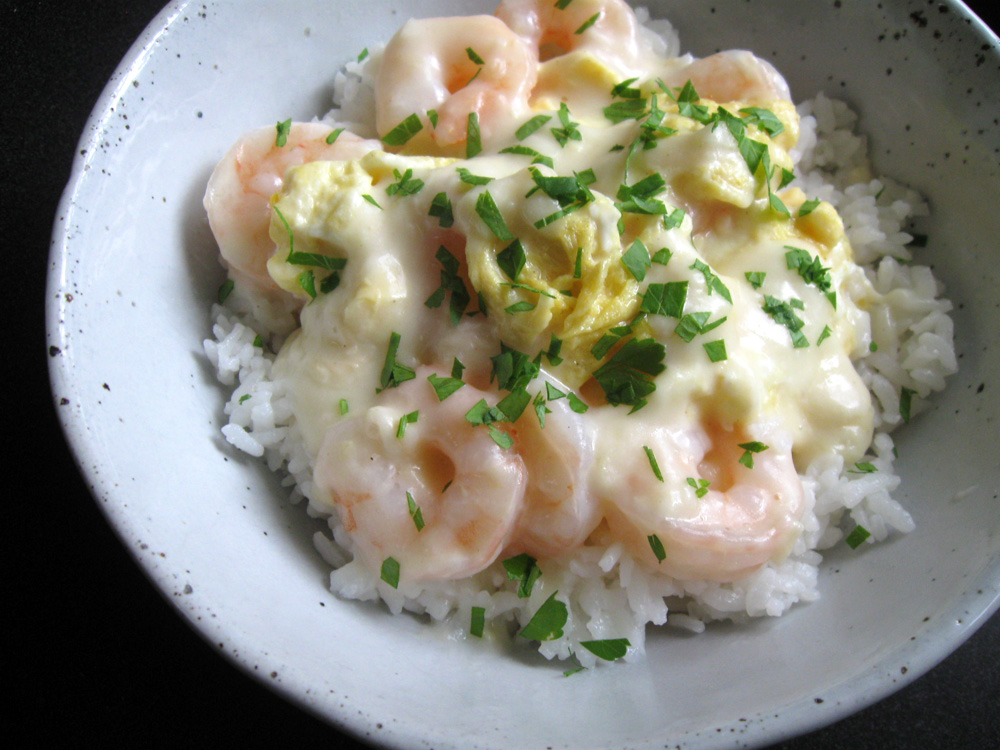 When I cook Rice Bowl dishes, I tend to season with Soy Sauce. Today I didn’t use Soy Sauce at all. The creamy sauce is seasoned with Salt & Pepper. It’s very simple, yet so delicious because of the flavour from the Garlic Prawns. It was a brilliant idea to add soft scrambled Egg to …