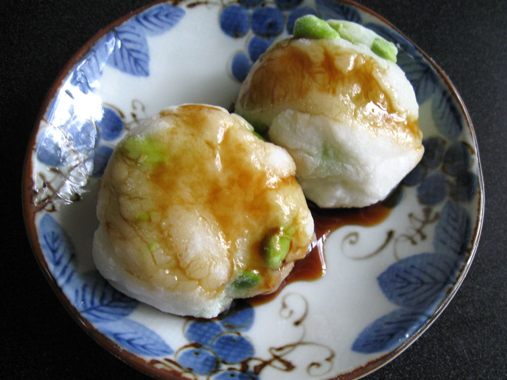 ‘Mame Mochi’ is slightly salted Mochi (pounded steamed Glutenous Rice) mixed with, most commonly, Black Soy Beans. This type mochi is usually formed into large logs and sliced later. When the slices of ‘Mame Mochi’ are toasted, they smell so good and taste wonderful. Well… it is not easy to make. So, I tried to …