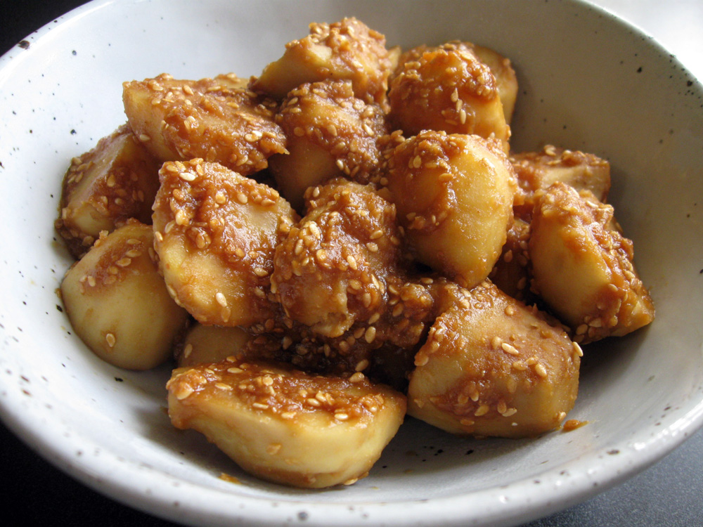 ‘Taro’ potato, ‘Satoimo’ in Japanese, has creamy & slimy texture and I love it. I often use Frozen Satoimo that are already peeled and ready to cook, because my hands often feel itchy when I peel Satoimo skin. However, today I found very good looking, perfectly small in size fresh Satoimo at a local green …
