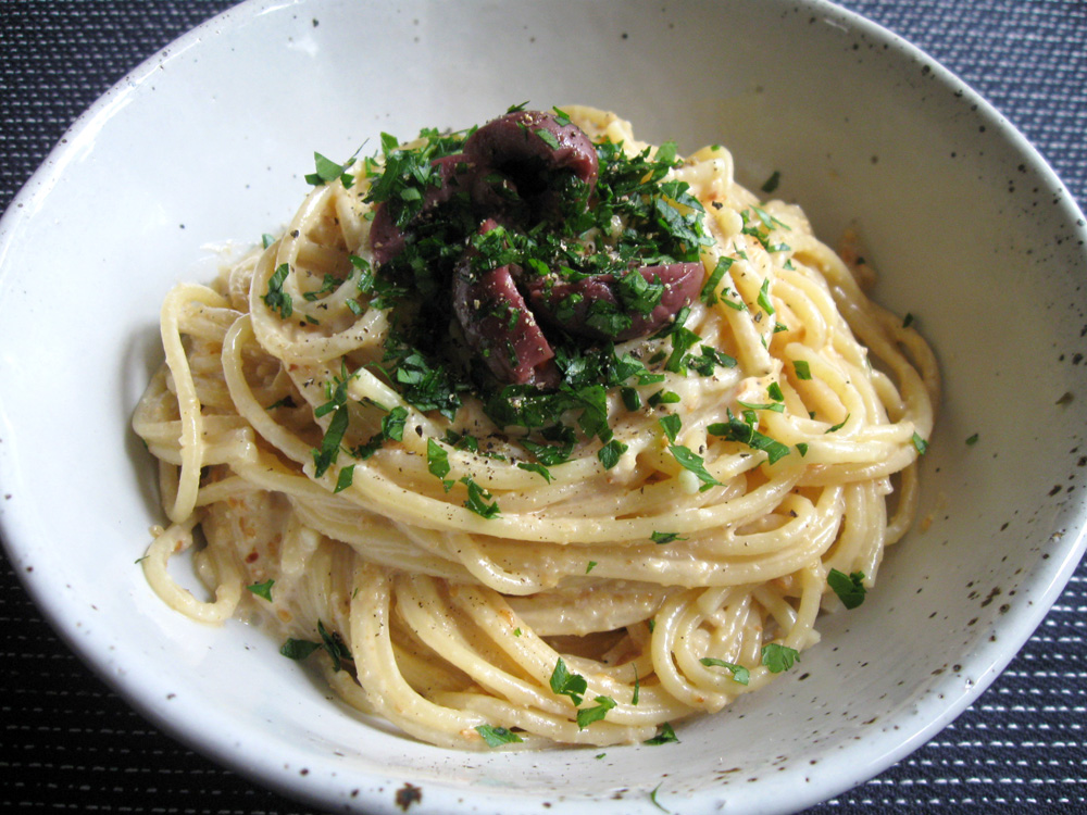 This is a very creamy pasta sauce. First I made it with Tahini, but I didn’t like the flavour. Tahini is ground RAW Sesame Seeds, and I like ground TOASTED Sesame Seeds, that is called ‘Nerigoma’ in Japanese. As such a special ingredient is not available where I live, I simply toasted Sesame Seeds and …