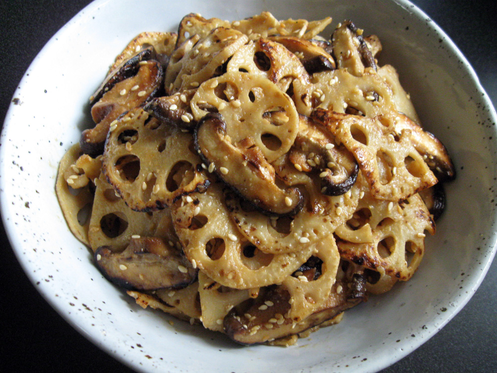 Local supermarket stores are now selling Frozen Lotus Root Slices thanks to the Asian population increase in the area. When I stir-fry them, I usually cook frozen slices so that the crunchy texture would more likely remain. Today I simply mixed with my ‘Goma-ae’ Sauce with Shiitate Mushrooms. It was simply delicious! Makes 4 to …