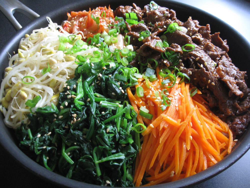 As you know, ‘Bibimbap’ is a Korean dish, and the word literally means ‘Mixed Rice’ which is same as ‘Mazegohan’ in Japanese. I particularly like ‘Hot Stone Pot Bibimbap’ that is served in a very hot stone bowl. The stone bowl is so hot that anything that touches it sizzles, and the rice becomes browned …