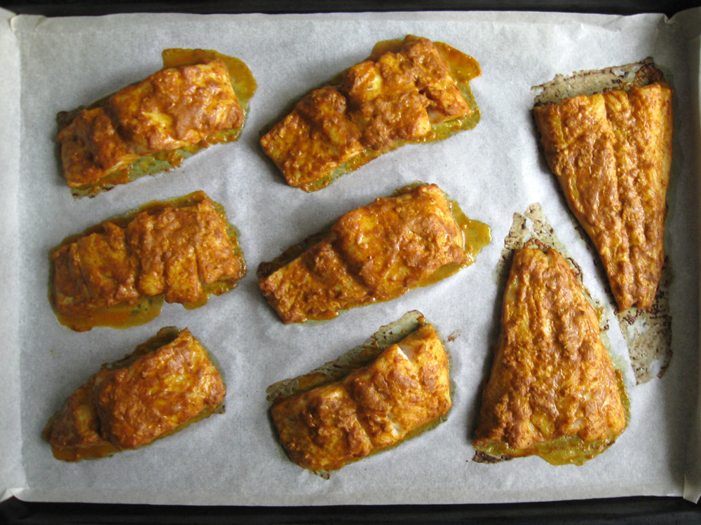 - Place Fish pieces on the prepared tray, making plenty of space around each piece, and bake for 10 to 15 minutes OR until cooked. Today I baked for 12 minutes. *Note: Cooking time depends on the type of the fish, and size and thickness of the fish pieces.
