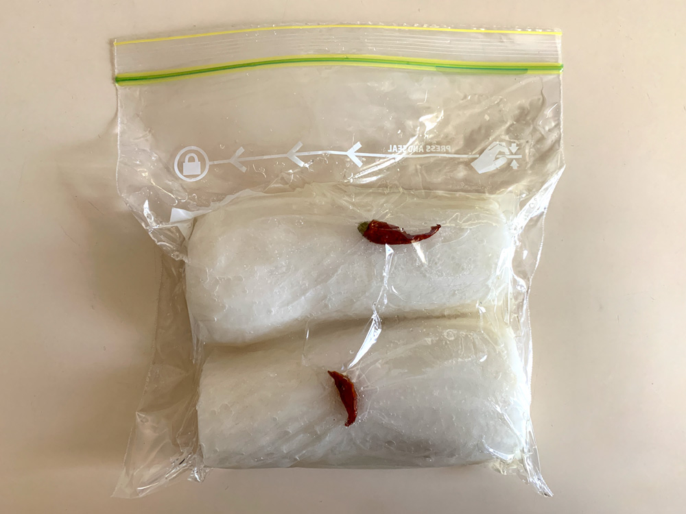 - Place everything in a ziplock bag, rub and combine well, then remove the air. A lot of water will come out from Daikon. Leave the bag in the fridge for at least several hours.