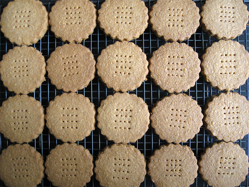 - Place on the prepared tray, use a small fork to make some holes in each biscuit, and bake for 25 to 30 minutes or until nicely browned. Transfer to a wire rack to cool completely.