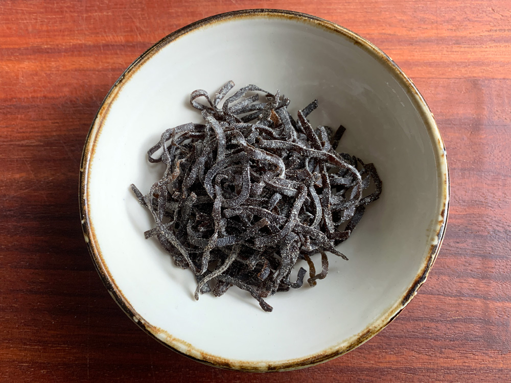 3 to 4 tablespoonfuls Seasoned Kombu (Kelp) *15 to 20g